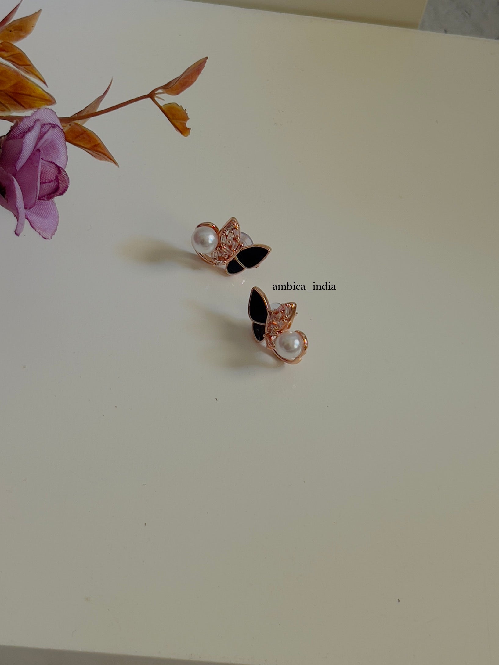 Black butterfly with pearl earrings