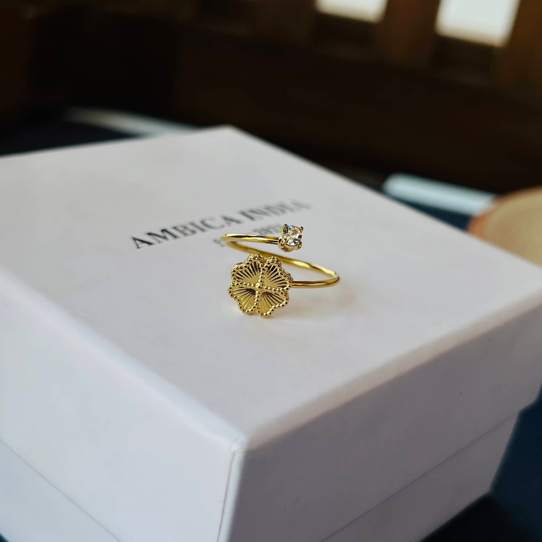Flower with crystal adjustable ring