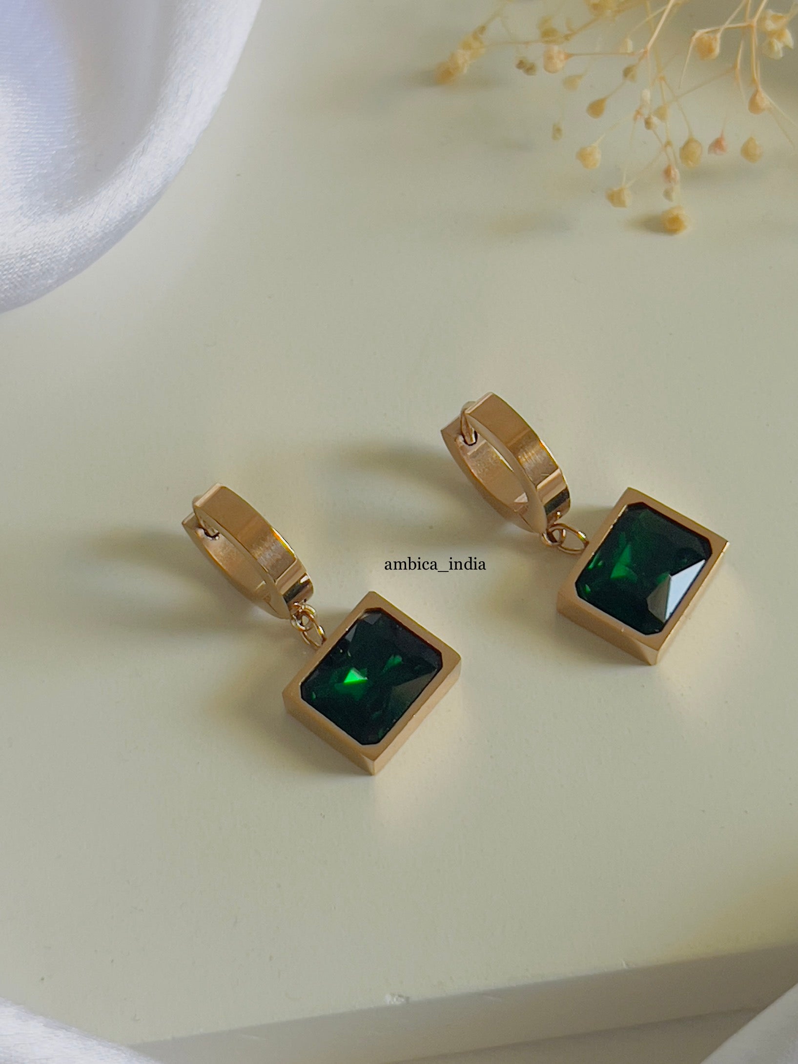 Green crystal drop earrings