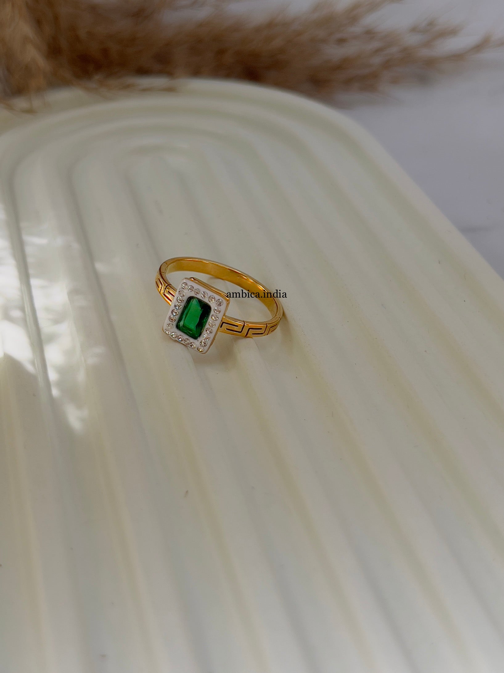 Green Crystal ring gold plated