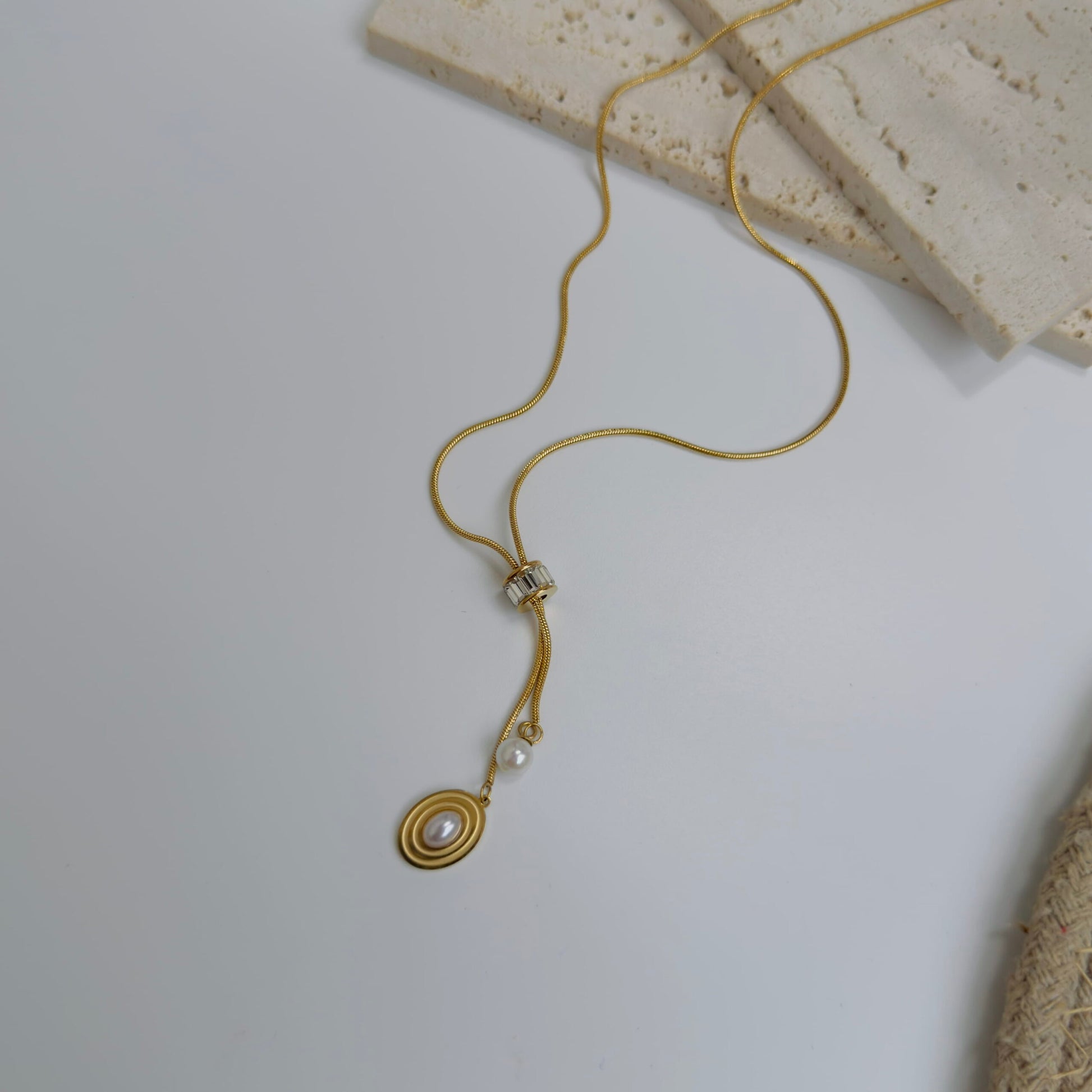 Hanging crystal with pearl necklace