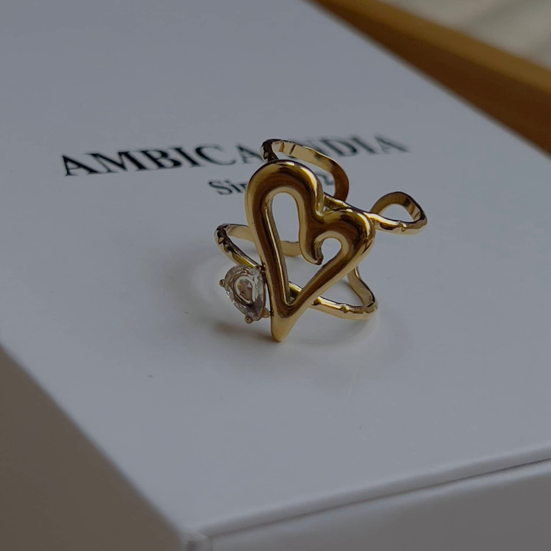 Heart white crystal ring