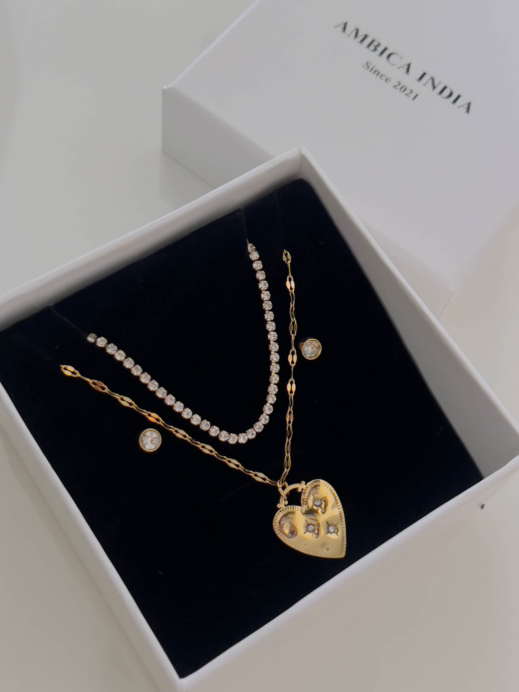 Heart with crystal necklace with earrings