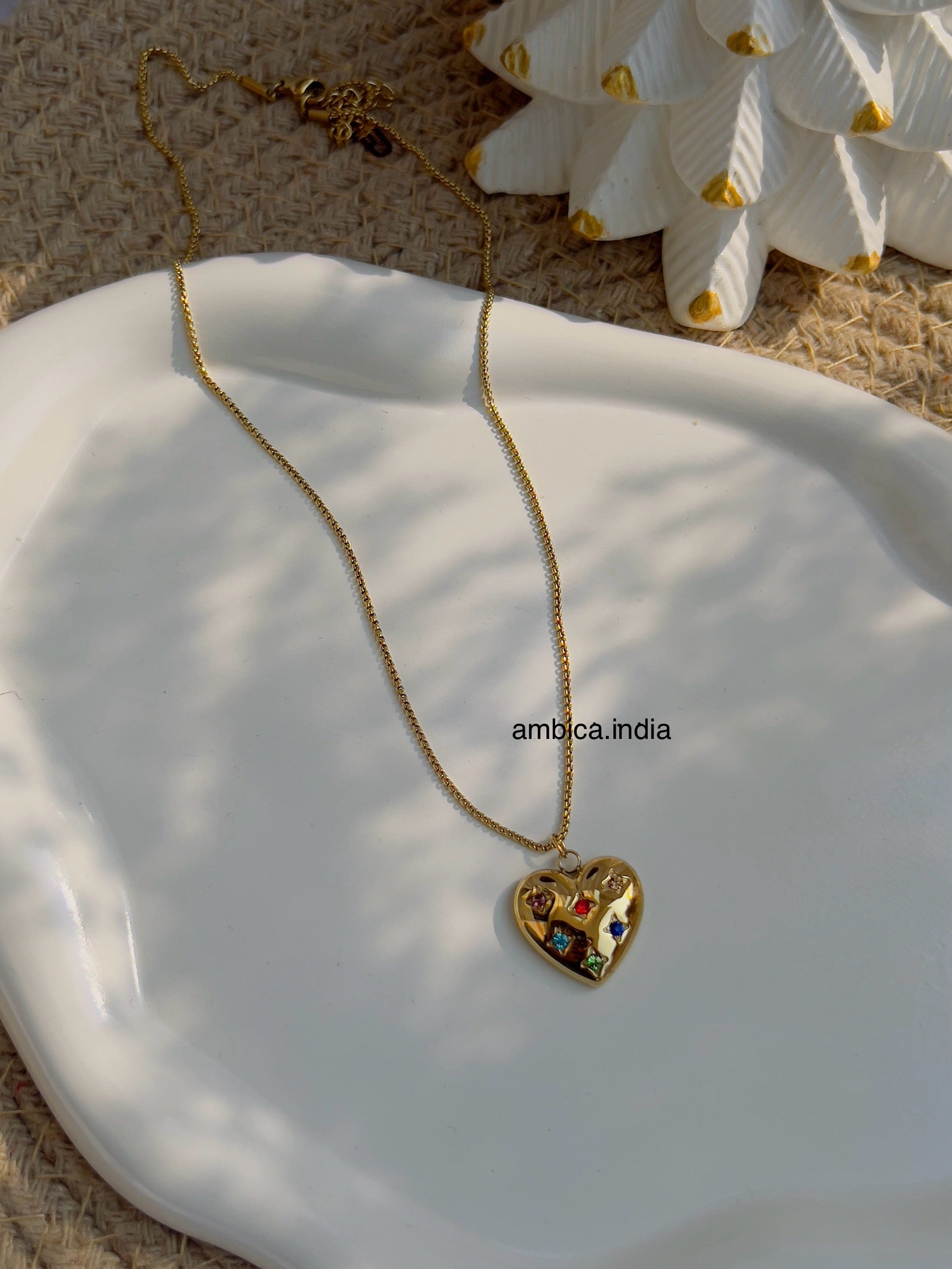 Heart with multicolour crystal necklace