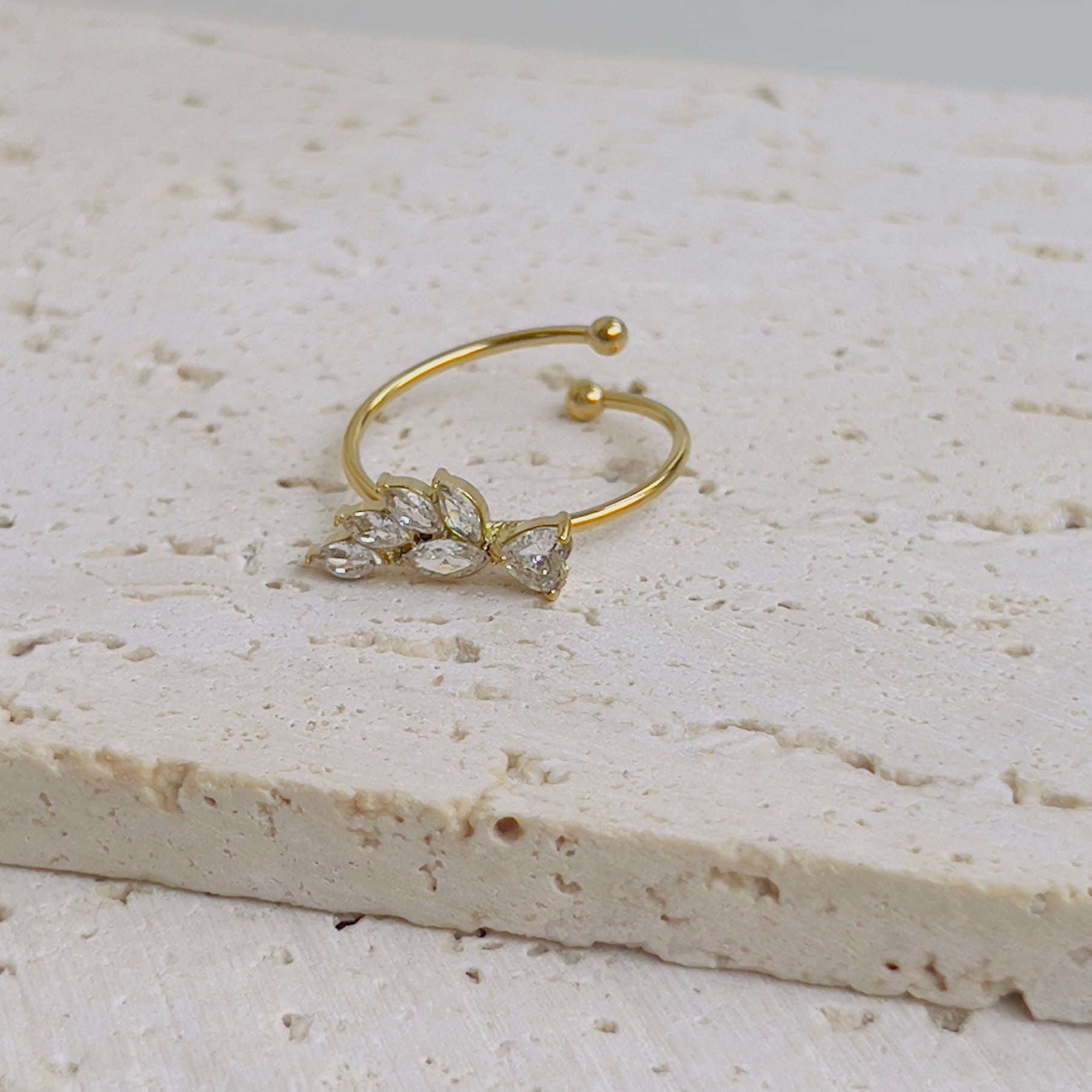 Leaf white crystal ring