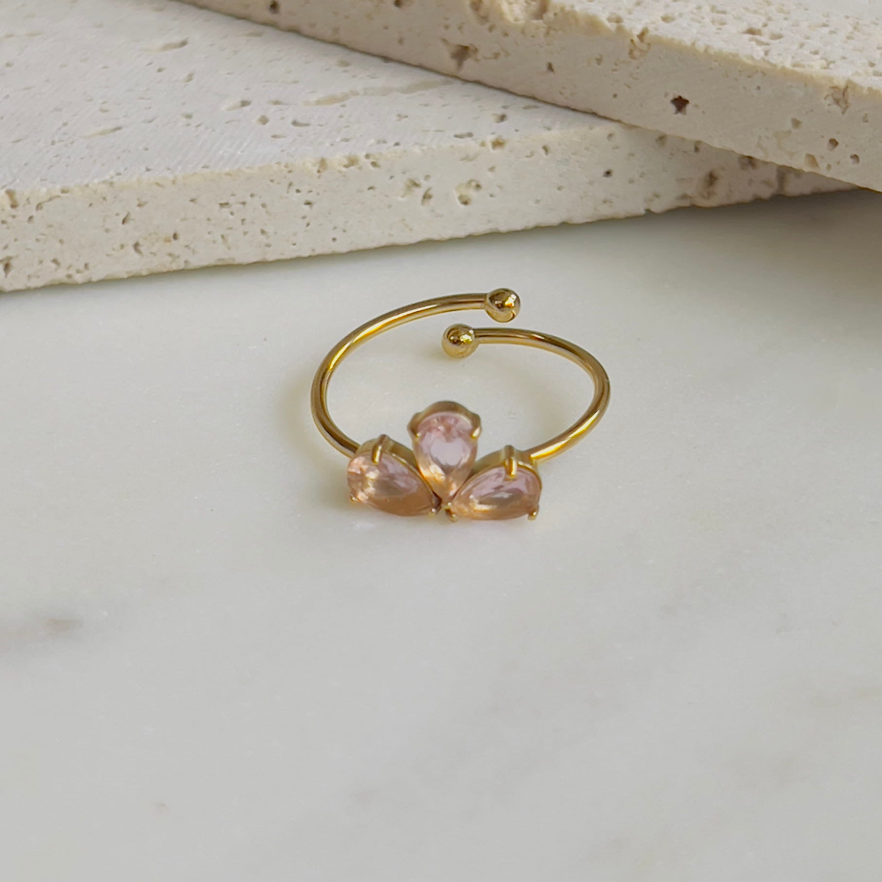 Lotus pink crystal adjustable ring