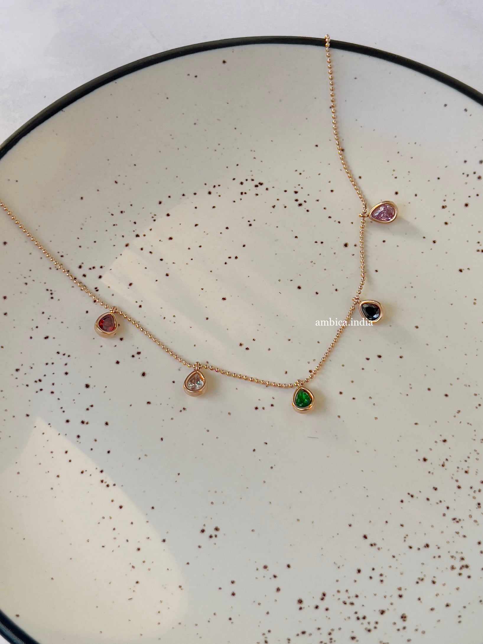 Multicolour drop necklace rose gold