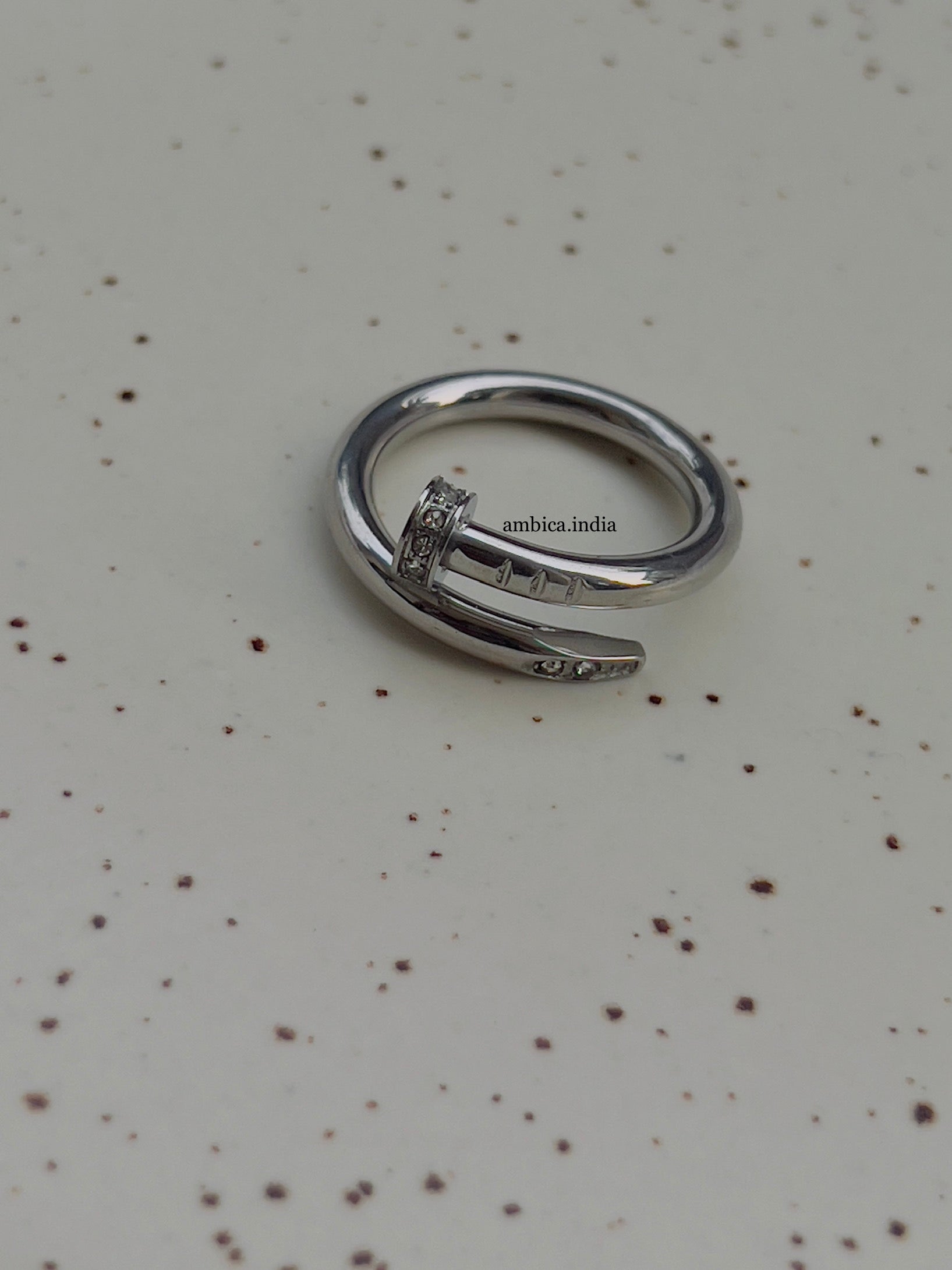 Nail ring with studded silver