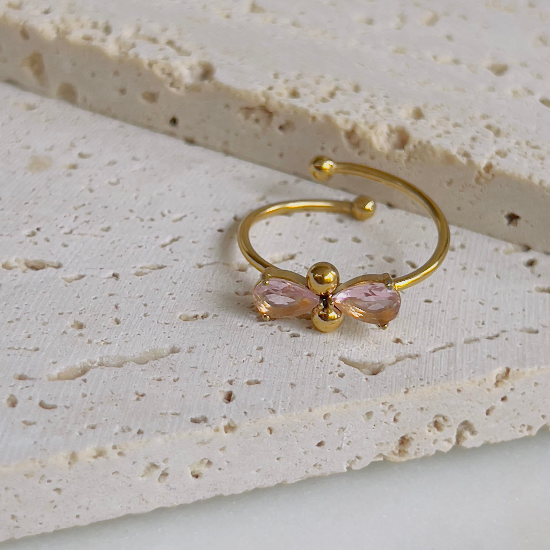 Pink drop crystal adjustable ring
