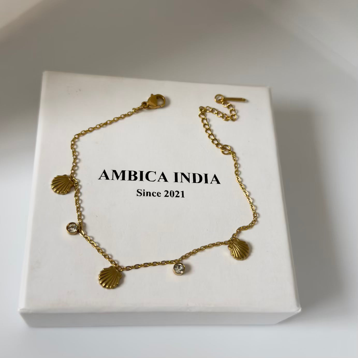 Shell with white crystal bracelet