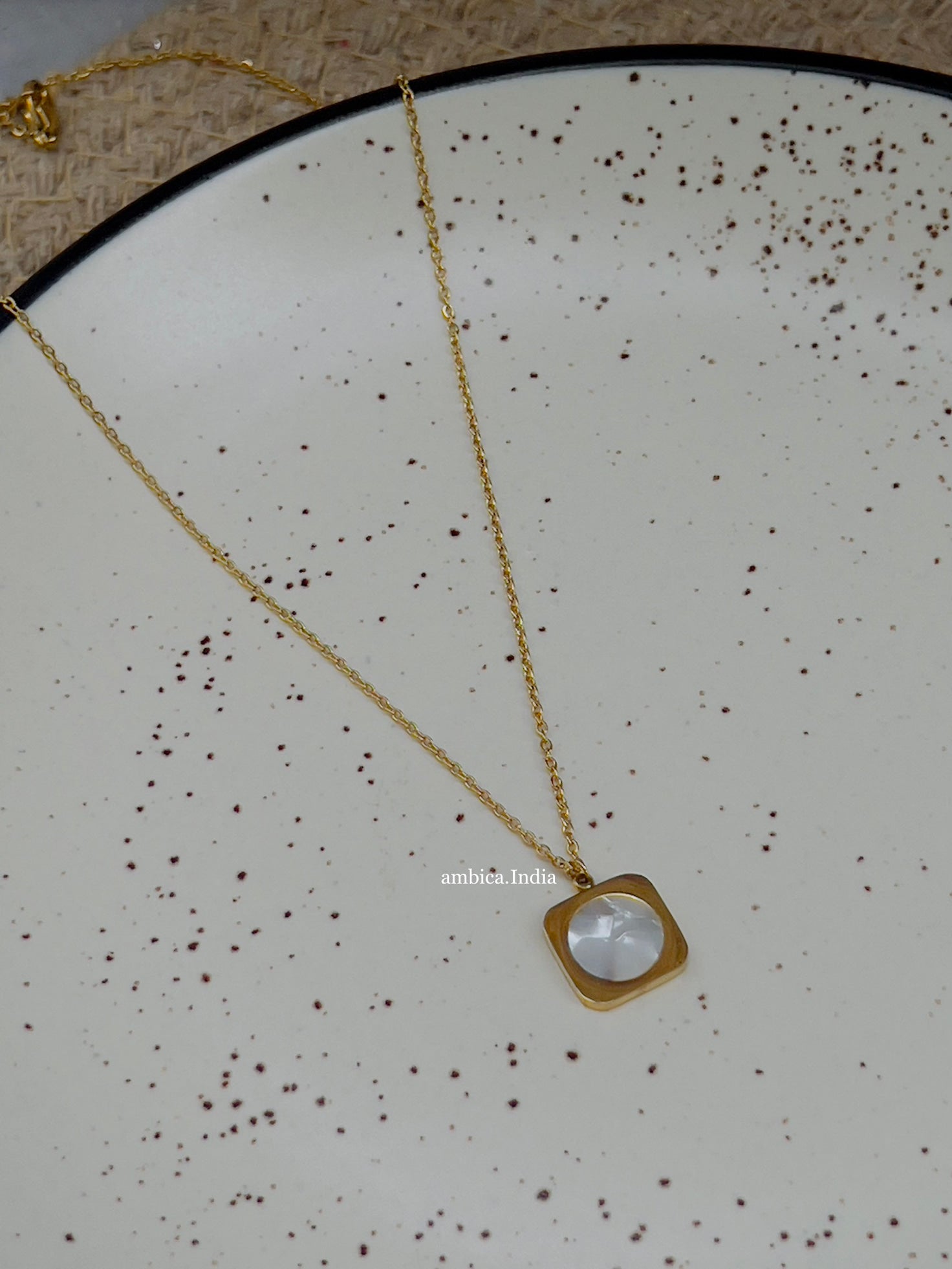 Square mother Pearl 18k gold plated necklace