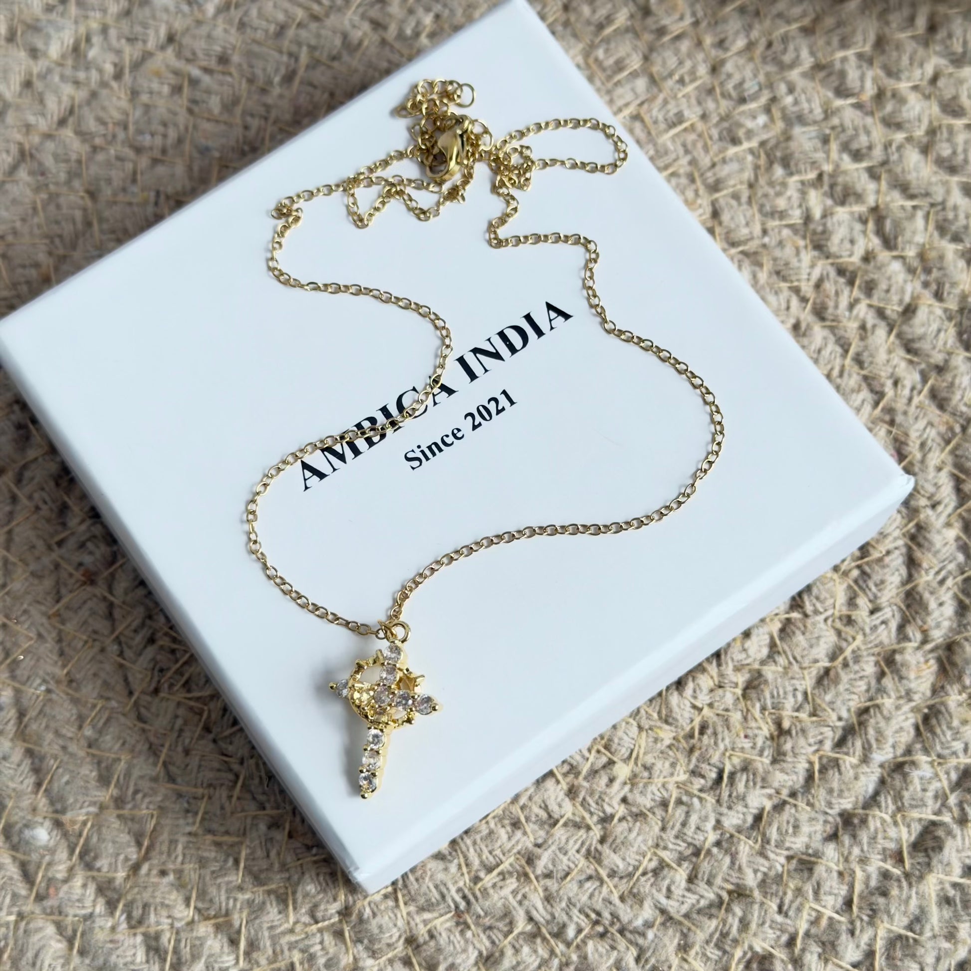 White crystal cross necklace